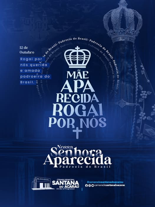 Neste 12 de outubro, celebramos o Dia de Nossa Senhora Aparecida, Padroeira do Brasil, símbolo de esperança, devoção e proteção para milhões de fiéis. Que este dia nos inspire a cultivar valores de solidariedade, união e amor ao próximo, que tanto precisamos em nossa vida comunitária e na construção de uma cidade mais justa e fraterna. A Câmara Municipal de Santana do Acaraú saúda todos os devotos e devotas, renovando votos de paz, fé e prosperidade para cada família santanense.